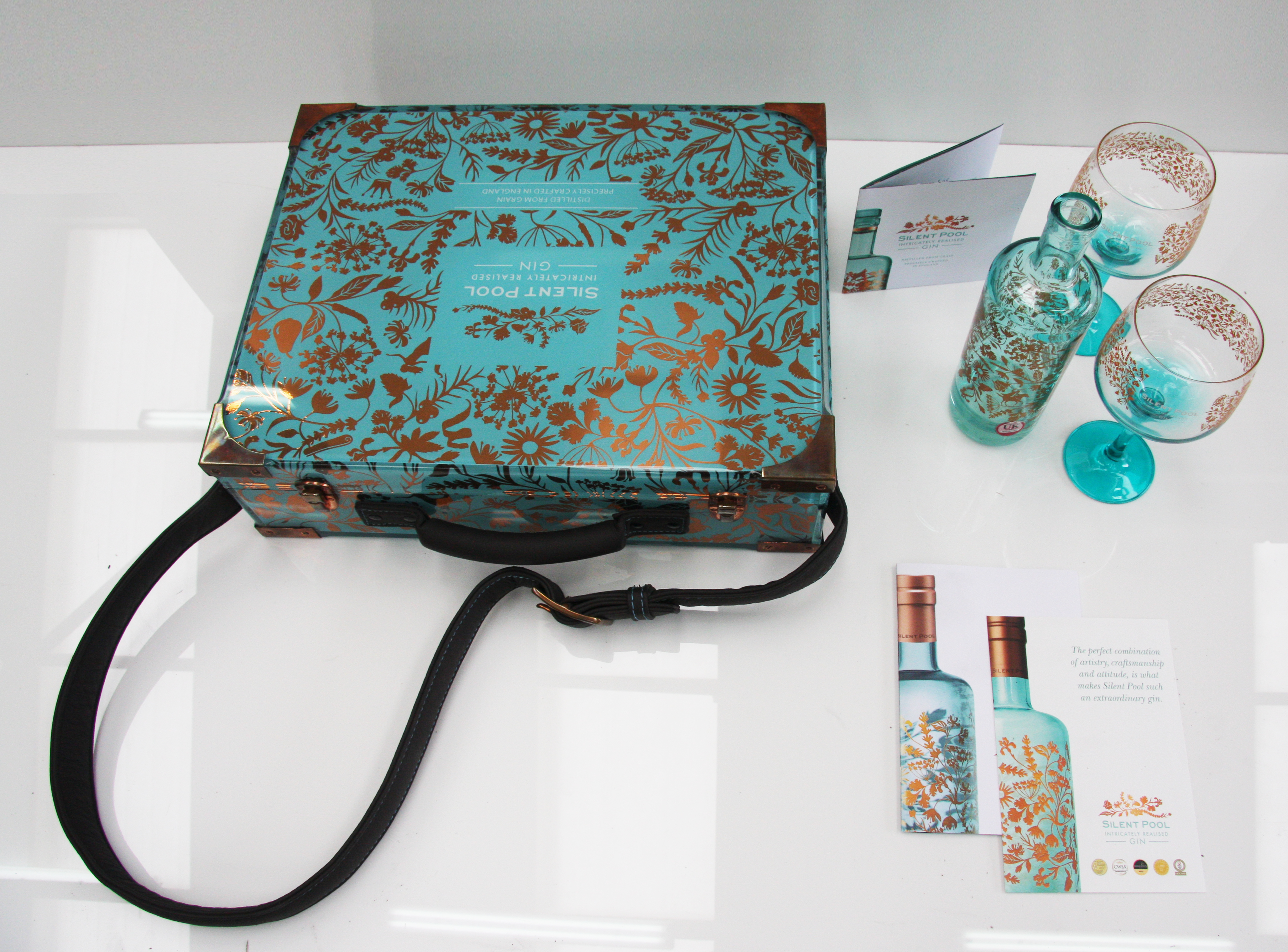 This briefcase was made from clear Perspex including an interior consisting of high polished edges and high precision joints with moulds to effortlessly secure the glass bottles. Fret cut Silent Pool artwork was also applied to the interior in copper vinyl maintaining the Silent Pool appearance. All beautifully accessorized with fine leather including a shoulder strap for easy carrying.
